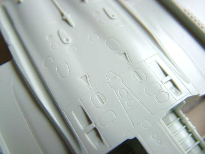 Lediglich die Original-Bodenplatten waren nicht so mein Geschmack, zu grob. Ich hab für das Dio eine Platte aus leicht grau eingefärbtem und mit Ponal versigelten Gips gegossen, und mit einer Nadel werden die einzelnen Betonplatten des Flughafens herausgearbeitet. Man kann so schon etwas realistischer bauen.