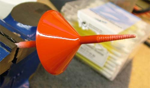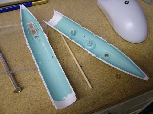Der Innenraum hellblau, denn Innen soll ja für das Diorama beleuchtet sein. Daneben die rote Nase, das war als