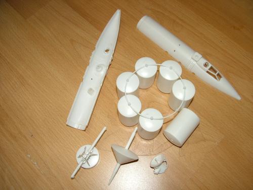 Das sind die beiliegenden Decals, daneben der Rohbau des Modells.